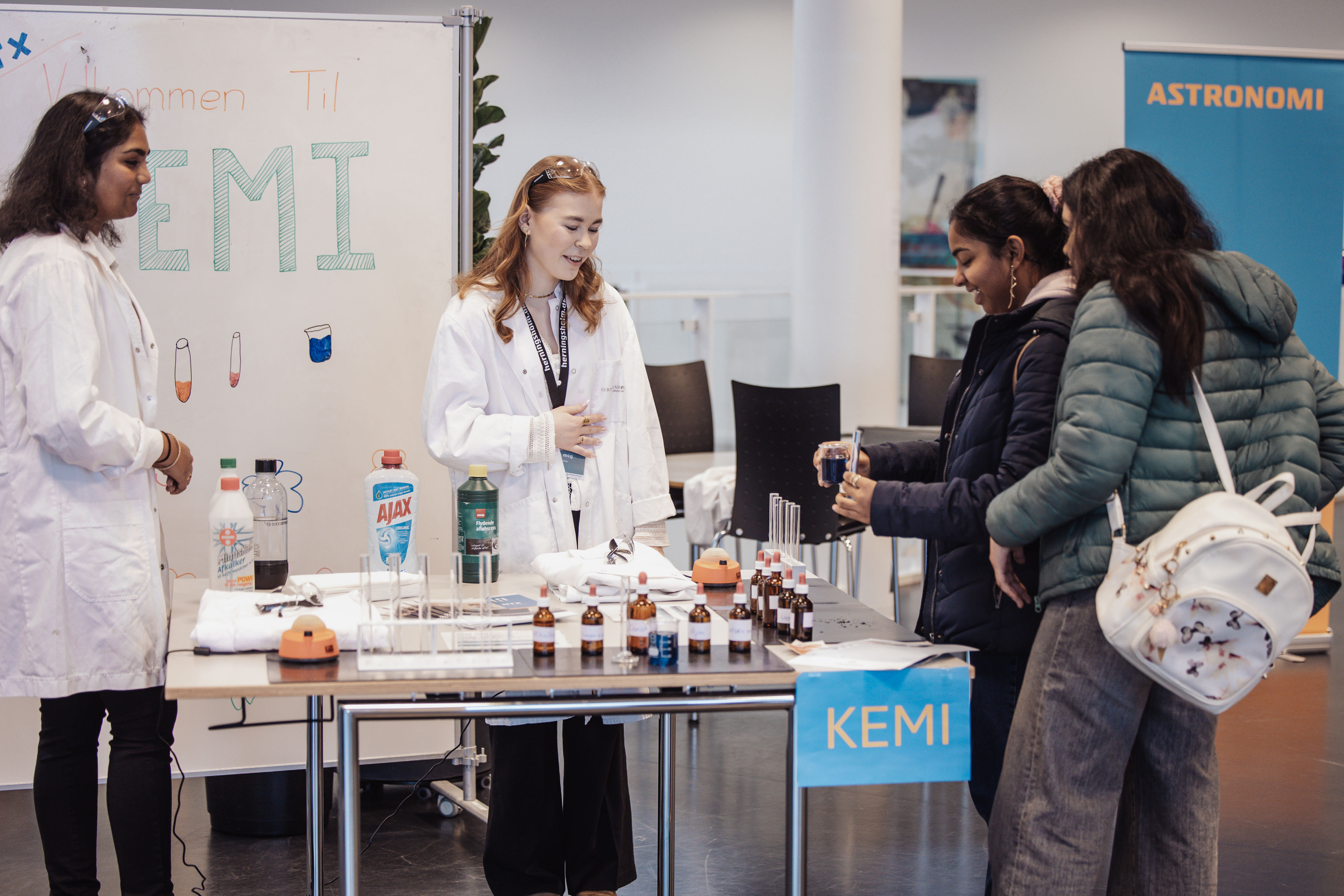 Til åbent hus er der rundvisning, popcorn og varm kakao, og du kan møde nogle af de elever, der allerede går på Herningsholm. Spørg dem om alt. De ved, hvordan det er at vælge uddannelse – og de kender alle de bedste steder på skolen.