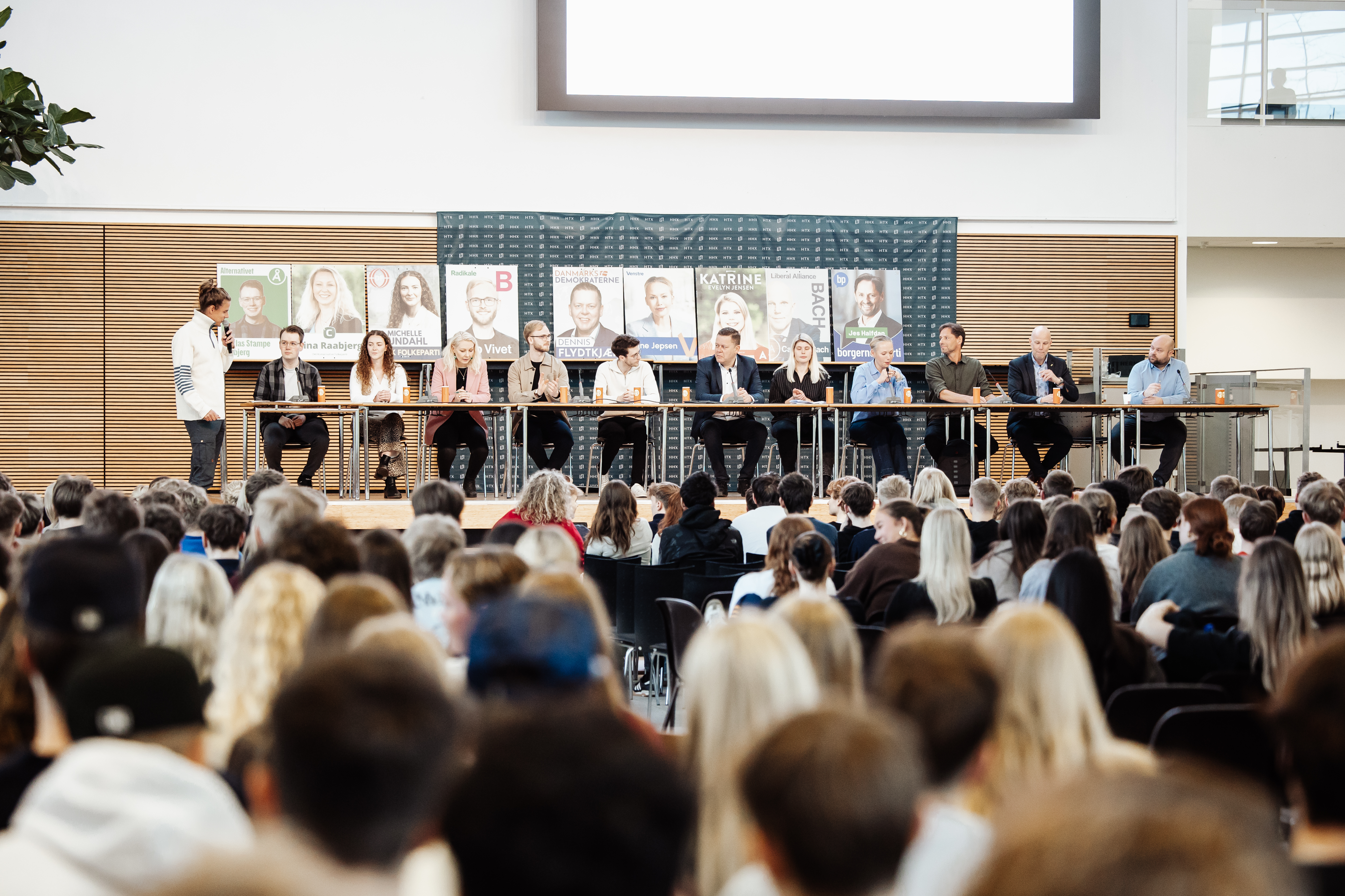 Agoraen var fyldt til bristepunktet med flere end 800 HHX- og HTX-elever, da der mandag den 16. marts var valgdebat på Herningsholm Gymnasium.