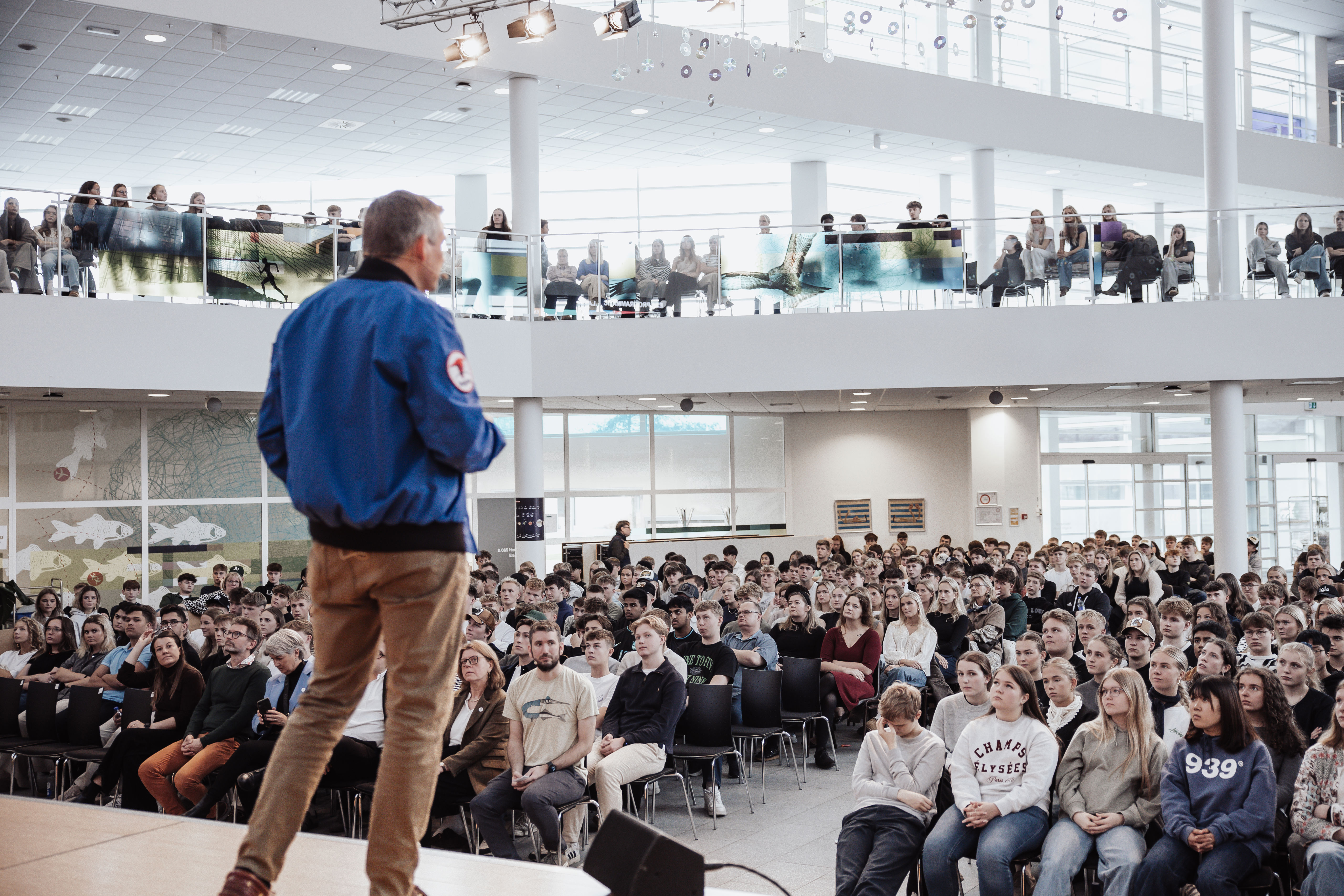 Her kunne flere end 2000 elever og ansatte fra Herningsholms erhvervsrettede uddannelser, erhvervsuddannelserne, HHX, HTX og 10. klasse høre ESA-astronauten fortælle om sin imponerende seks måneder lange Huginn-mission til den internationale rumstation, ISS.