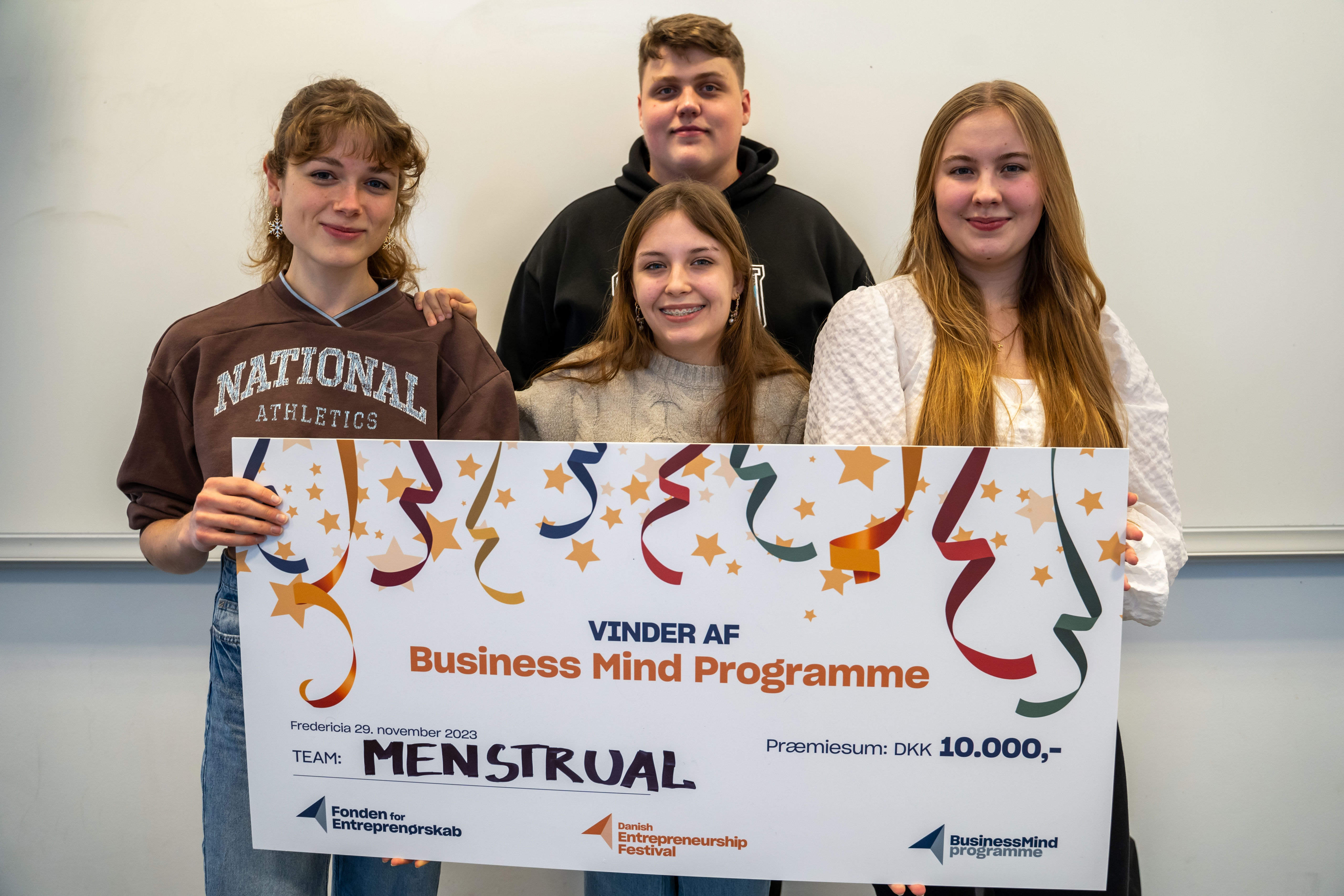 Elevgruppen tager af sted med selvtillid i bagagen, da de i slutningen af november deltog i Business Mind Programme ved Danish Entrepreneurship Festival i Fredericia. Her vandt gruppen førstepladsen ud af 144 andre elevvirksomheder og fik en præmie på 10.000 kroner.