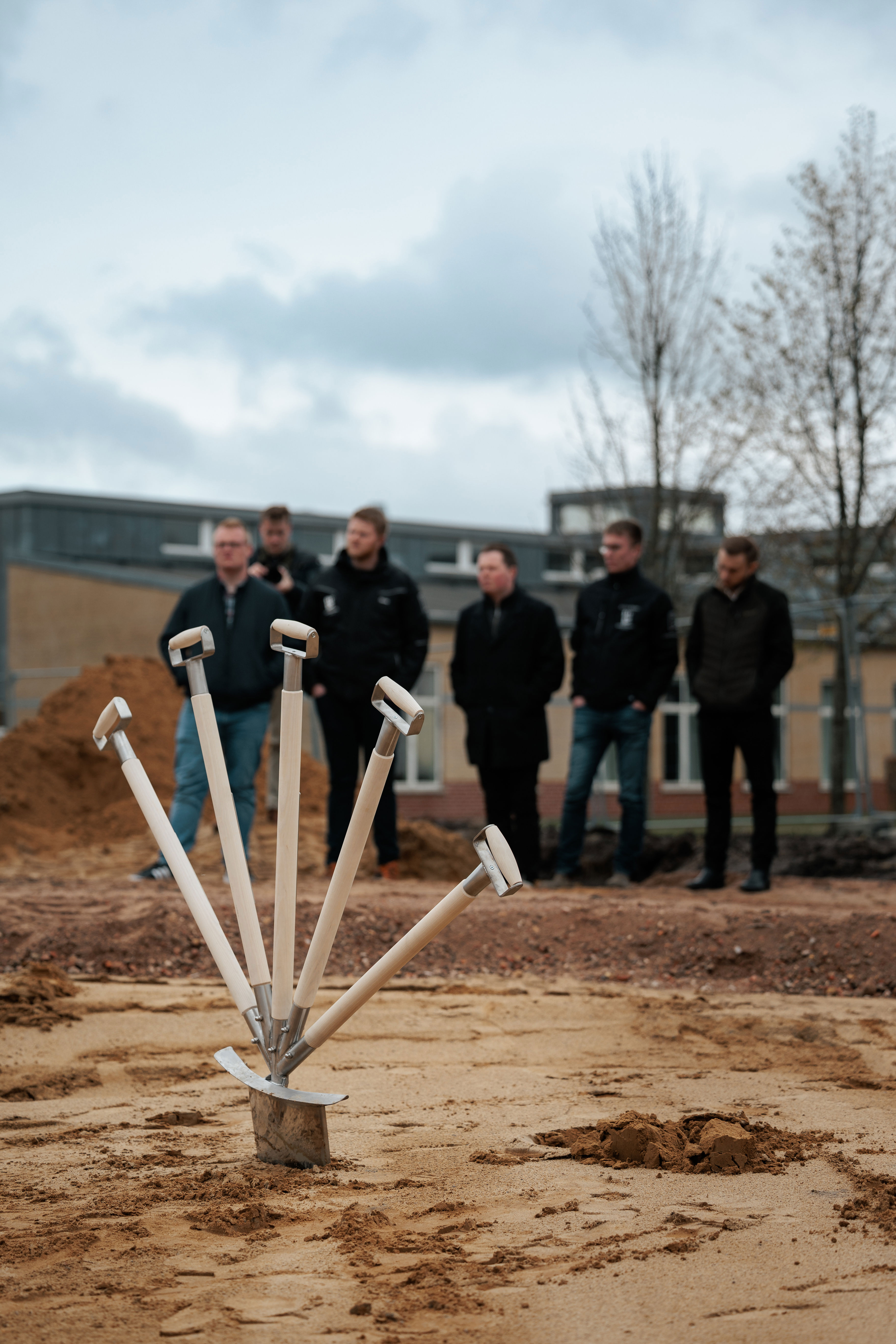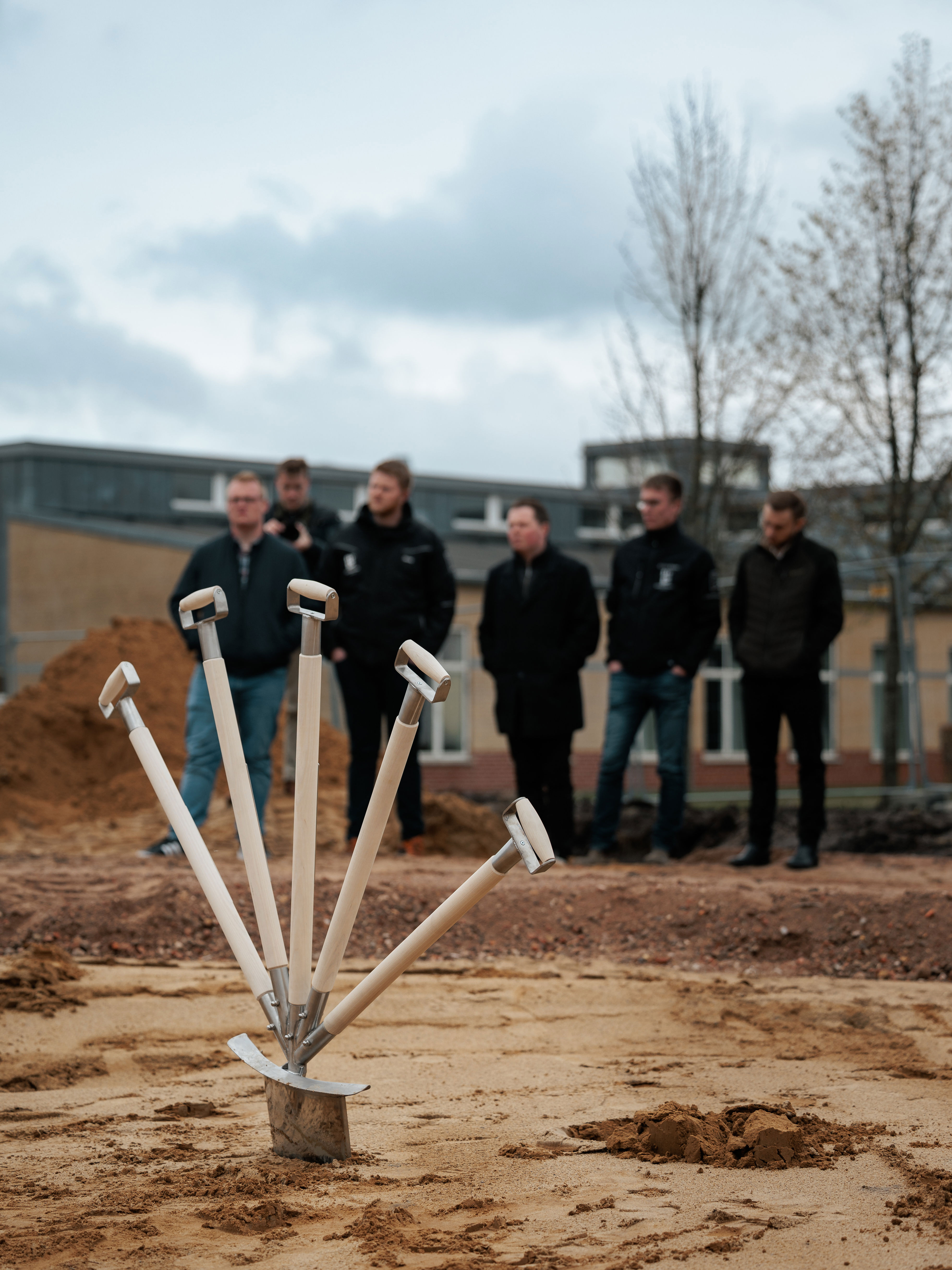 Én spade, fem håndtag og samme antal repræsentanter for LandboUngdom i Midt- og Vestjylland. I fællesskab blev første spadestik taget fredag formiddag til byggeriet af Agroskolens nye hovedkvarter i Herning.