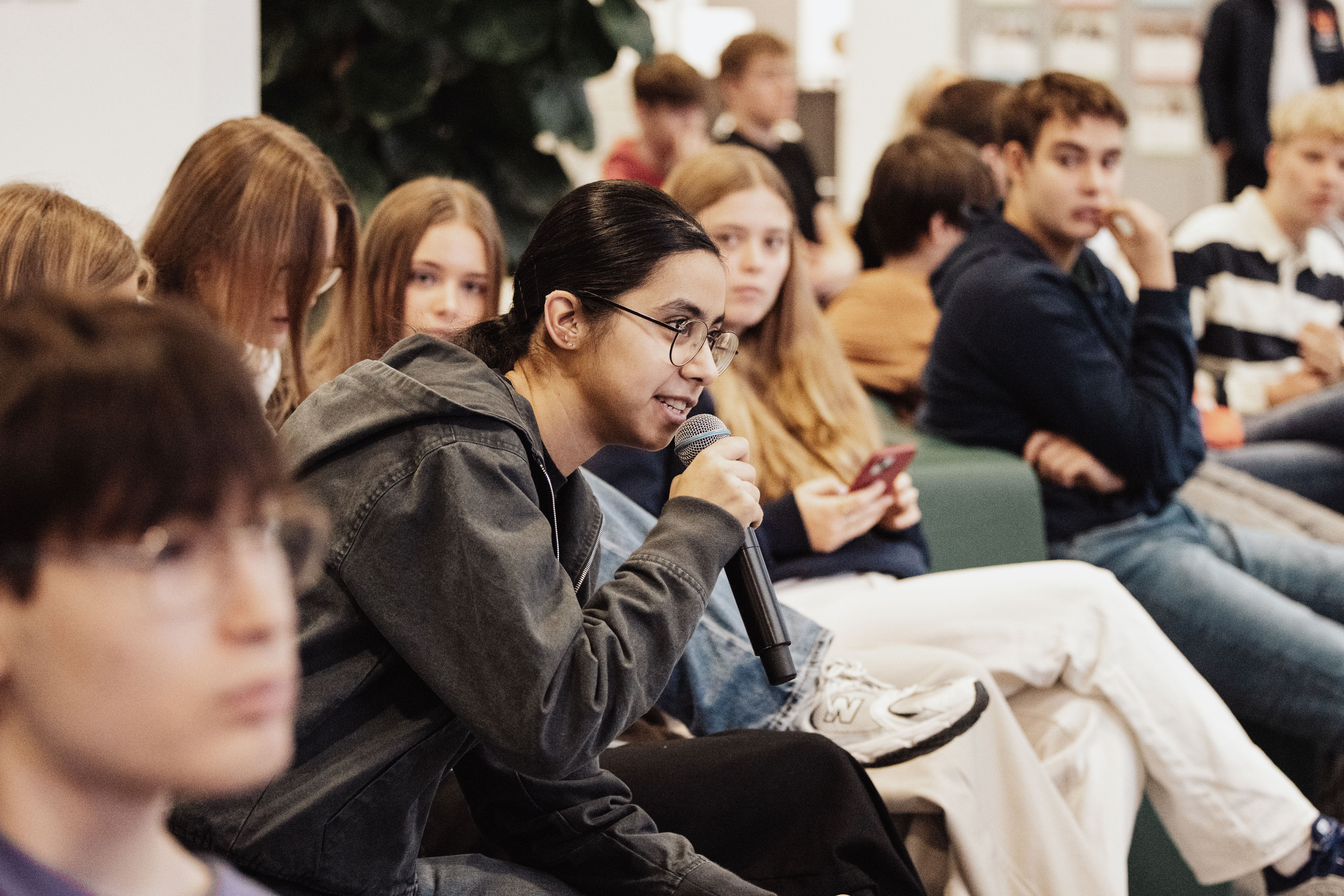 Eleverne havde forberedt sig i undervisningen, og spørgsmålene spændte fra det helt nære til de større temaer, der præger hverdagen for unge i Herning: kulturliv, transport og ønsket om mere inddragelse i kommunalpolitikken.