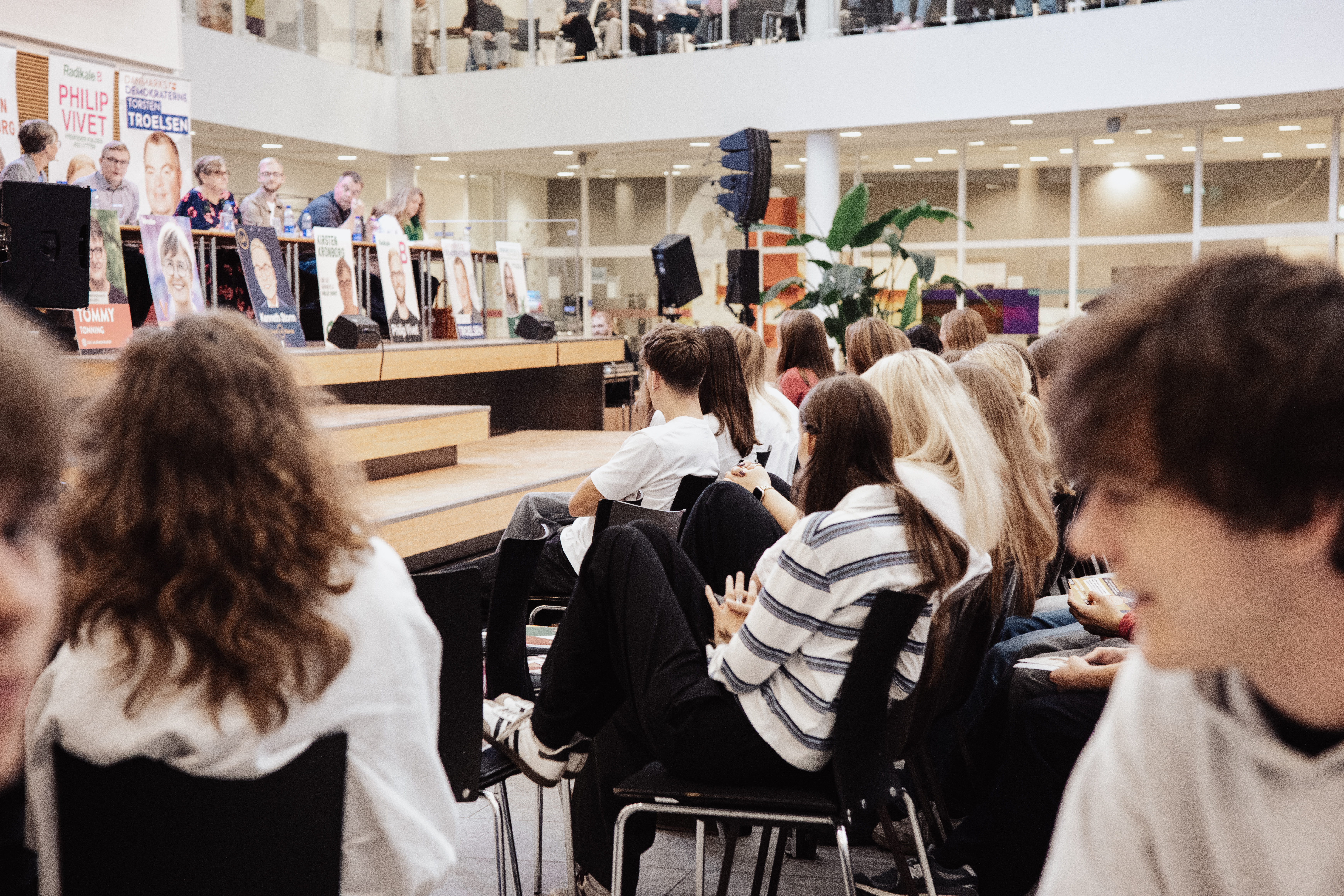 Det summede af aktivitet, da omkring 900 elever fra HTX og HHX på Herningsholm Erhvervsskole & Gymnasier samledes til debat – og engagementet var stort. Hænderne røg i vejret, og spørgsmålene stod i kø til de syv kommunalpolitikere på scenen. For mange af eleverne var det første gang, de stod over for at skulle stemme – omkring en tredjedel af de fremmødte er førstegangsvælgere.
